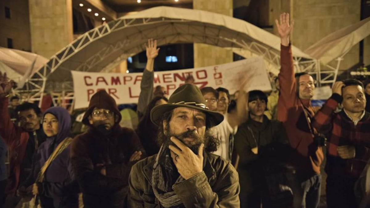 A los turistas, las palomas y los funcionarios que cruzan cada día la Plaza Bolívar de Bogotá los observa, desde hace una semana, un grupo de ciudadanos desde sus tiendas de campaña. Forman el Campamento por la Paz, un asentamiento que se creó el 5 de octubre, tres días después de que se rechazaran en plebiscito los acuerdos con la guerrilla de las FARC tras cuatro años de negociación. Sus habitantes, como miles de colombianos, salieron a reclamar aquel día que no volviera la guerra y que se revisara lo pactado con celeridad. Y por si la manifestación no era recordatorio suficiente, decidieron quedarse a dormir en el centro de la ciudad, a la vista de los máximos órganos de poder de Colombia: el Parlamento, la Alcaldía, el Palacio de Justicia y la Catedral.