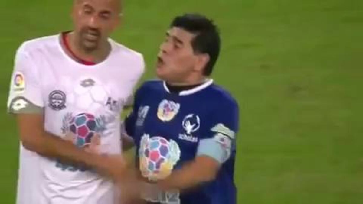 Paradojicamente lo que debía ser un partido alegre terminó con el enfado entre Veron y Maradona