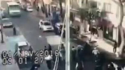 Un vídeo de las cámaras de seguridad pública muestra como una turba se enzarza a golpes en la calle donde se estaba rodando la película