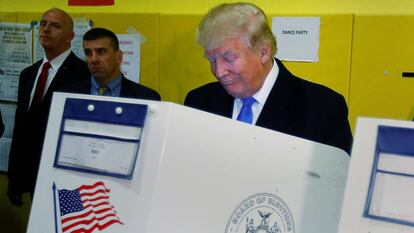 Los centros de votación han abierto temprano y la primera parte del día ha transcurrido sin percances. Trump, que al amanecer afirmaba en la radio que si no ganaba vería su candidatura como “una pérdida de tiempo y de dinero”, votó en Manhattan entre abucheos, y después ha dado una entrevista a la cadena Fox en la que ha vuelto a sembrar la sospecha sobre la limpieza del proceso: “Las máquinas apuntan un voto a los demócratas cuando quieres votar republicano”.
