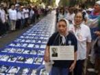 Siluetas de desaparecidos cuelgan de ambos extremos de la Avenida de Mayo y carteles con los mensajes "Son 30.000 desaparecidos", "Ni olvido ni perdón", "Nunca más y "Memoria, verdad y justicia" pueden verse pegados a las paredes, en camisetas y en las pancartas que sostienen en el aire los miles de manifestantes. También abundan las fotografías de desaparecidos y reclamos de justicia.