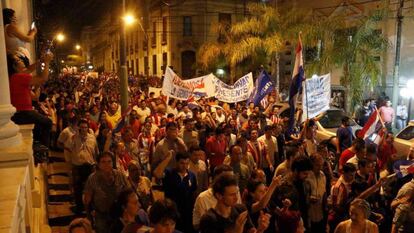 La tensión en Paraguay se ha disparado tras los disturbios que se han saldado con la muerte de un joven opositor a manos de la policía y con numerosos heridos, después de que el Congreso fuera asaltado por un millar de manifestantes, muchos de ellos con las caras tapadas. Protestaban por el intento del presidente, el conservador Horacio Cartes, de reformar la Constitución para permitir la reelección y poder continuar en el poder después de 2018. Algunos de los manifestantes llegaron a prender fuego al salón principal, sacaron ordenadores a la calle, arrancaron las placas con nombres de los senadores de las puertas de sus despachos y salieron a la calle con ellas en la mano. Al menos 211 personas, entre las que hay menores de edad, han sido detenidas durante los disturbios. La tensión va en aumento y opositores del interior del país se están trasladando a la capital para reforzar la protesta.