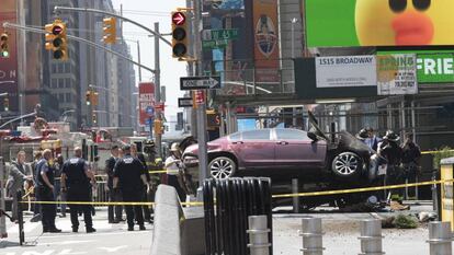 El coche es un Honda Accord que ha acabado empotrado en una barrera en la Séptima Avenida con la calle 45, tras entrar en sentido contrario tres calles más abajo. Se ha subido a la acera y ha atropellado a varios peatones alrededor de las 12 del mediodía hora local en Manhattan. "Pasó como a cinco metros de mí", comentó un turista de origen argentino visiblemente afectado, "iba a gran velocidad, muy, muy rápido, como a 100 kilómetros por hora. Arrolló a la gente como si fueran bolos".
