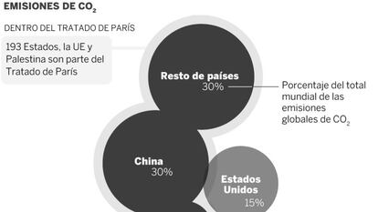 La suma de las emisiones de dióxido de carbono (CO2) de todos los países de la Unión Europea no alcanza ni de lejos las de Estados Unidos. El país norteamericano es el segundo mayor emisor del mundo, solo superado por China, que dobla las toneladas de CO2 emitidas a la atmósfera por EE UU.