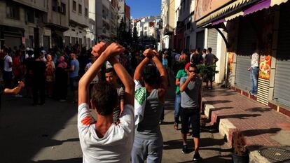 Todo el mundo era consciente de que la ciudad y sus alrededores estaba tomada por la policía. “Hay mucho miedo, pero también hay ganas de gritar”, comentaba un miembro del Movimiento que, como la gran mayoría de los consultados, prefiere mantenerse en el anonimato. Al principio se reagruparon en las esquinas unas decenas y después fueron unos cientos. Comenzaron a marchar por Alhucemas mirando constantemente hacia atrás para ver la reacción de los antidisturbios.