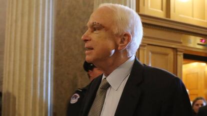 Iracundo ante este bloqueo, Trump utilizó toda su energía y exigió públicamente un cierre de filas de sus senadores. A la llamada acudió hasta John McCain, afectado de un agresivo cáncer de cerebro. Su llegada al Capitolio fue recibida con una gran ovación.