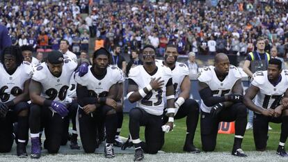 El entrenador de los Baltimore Ravens, John Harbaugh, y sus jugadores se tomaron las manos en señal de protesta antes de su partido este domingo. El dueño de los Jaguars bajó al césped para escuchar el himno con sus jugadores. Muchos de los atletas se arrodillaron. Según CNN, la NFL publicará un anuncio durante los partidos de la jornada de hoy para "demostrar el poder del fútbol americano para unir a la gente".