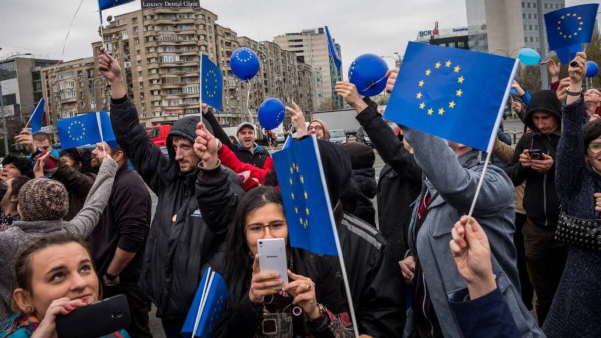 Resulta difícil encontrar una avenida en Bucarest en la que no ondee una bandera de la UE, la misma que destacó en las multitudinarias manifestaciones antigubernamentales que se expandieron por toda Rumania hace unos meses. En un entorno regional en el que predominan las políticas reaccionarias y nacionalistas, el Parlamento rumano es el único de Europa del Este que no cuenta con un partido euroescéptico. La sociedad rumana es la tercera que mejor valora las instituciones comunitarias, según los últimos Eurobarómetros, solo por detrás de la de Lituania y Luxemburgo. Los jóvenes, los más reacios a acudir a las urnas en los últimos comicios, son los más europeístas.