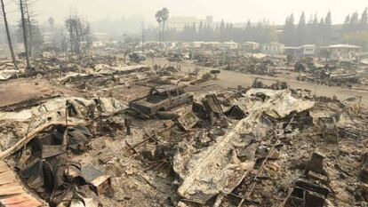 La devastación en Sonoma era especialmente dramática en el barrio residencial de Coffey Park, donde literalmente no quedaba nada en pie. “Las casas han desaparecido, se han convertido en polvo”, decía a France Presse Jack Dixon, que ha vivido en la zona dos décadas. “Es como si nos hubieran tirado una bomba nuclear”. Las imágenes aéreas muestran que no es una exageración. Todavía hay 5.000 casas amenazadas.