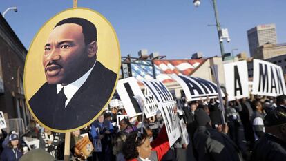 Estados Unidos se miró ayer en el espejo de la historia. Cincuenta años después del asesinato de Martin Luther King, el país vibró en recuerdo de un símbolo que nunca desfallece. Tanto ahora como entonces, no hay día en que la lucha emprendida por el reverendo no vuelva a cobrar sentido. El racismo y el odio al otro, ya sea en la forma de muros, abusos o crímenes, persiste y con ellos la llama que prendió King.