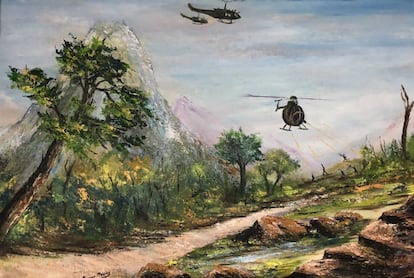 A Félix Rodríguez, exagente de la CIA de 77 años y quien participó en la captura y ejecución del Che Guevara en Bolivia, le regaló un paisaje tropical en el que dos helicópteros vuelan sobre un grupo de guerrilleros que les disparan a punta de metralleta. Rodríguez le dio en 1985 cobertura para entrar de incógnito en la base de Ilopango (El Salvador) desde la que se dirigían los operativos secretos de la CIA a favor de la contrainsurgencia de la Nicaragua sandinista a las órdenes del coronel Oliver North, hoy presidente de la Asociación Nacional del Rifle, y a los que se sumaba Posada tras fugarse de la cárcel en Venezuela al tercero intento –tras uno en que se evadió disfrazado de militar y que terminó frustrándose tras refugiarse en la Embajada de Chile y otro en que intentó volar las paredes de la prisión con explosivos–. “Nuestro objetivo fue combatir el comunismo”, afirma Rodríguez.