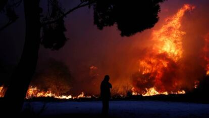 Las autoridades helenas, que han declarado el estado de emergencia y pedido ayuda a sus socios europeos, sugieren que los incendios podrían haber sido provocados. También han solicitado un dron especial a Estados Unidos (EE UU) para rastrear toda huella de “actividad sospechosa” —como la calificó el martes el portavoz del Gobierno— al constatarse la existencia, en la tarde del lunes, de 15 focos de fuego simultáneos en tres frentes distintos en el Ática. Además, los servicios de emergencia buscan a un número indeterminado de desaparecidos, según informan medios griegos como el diario Kathimerini. Las autoridades han pedido a los vecinos que informen si desconocen el paradero de familiares y amigos que residen en las zonas afectadas. La sospecha de que tras los incendios pueda estar la especulación inmobiliaria o incluso el indisimulado intento de construir parques eólicos son hipótesis plausibles para muchos griegos.