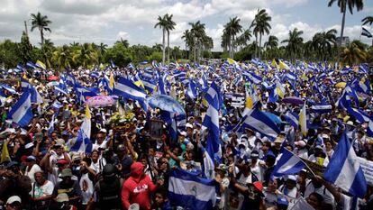 Miles de nicaragüenses marchan en respaldo a la Conferencia Episcopal, a la que el presidente del país ha llamado “golpista”