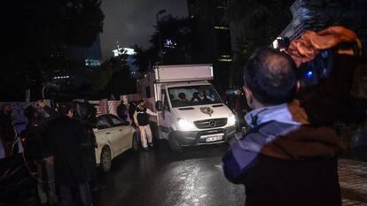 Este viernes, la policía científica turca registró durante tres horas una furgoneta negra que se cree que podría haber transportado el cuerpo de Khashoggi desde el consulado (donde se produjo su presunto asesinato y descuartizamiento) a la residencia del cónsul general, Mohamed Al Otaibi, quien abandonó Turquía el pasado martes. Los agentes utilizaron productos químicos para buscar posibles restos de sangre y ADN. En total, esta semana han sido inspeccionados 26 vehículos que el 2 de octubre salieron del consulado, incluidas las dos furgonetas, una Mercedes Vito y una Mercedes Sprinter, en las que viajaban miembros del equipo de 15 saudíes enviados ese día desde Riad con el supuesto objetivo de capturar o asesinar a Khashoggi y una de las cuales también se cree que transportaba el cadáver.