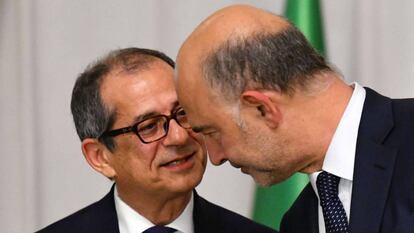 El ministro italiano de Finaznas, Giovanni Tria (izq.) y el comisario europeo de Economía, Pierre Moscovici, en Roma, el pasado viernes. En vídeo, declaraciones del primer ministro italiano, Giuseppe Conte, este lunes.Vídeo: ALBERTO PIZZOLI (AFP) / REUTERS-QUALITY