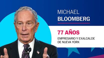 El multimillonario exalcalde de Nueva York entró tarde en la carrera presidencial (a fines de noviembre de 2019) con una propuesta distinta. El empresario que ostenta una de las mayores fortunas del mundo gracias a la compañía de comunicación Bloomberg LP, que fundó en 1981, no acepta donaciones de externos para su campaña, financiada en su totalidad de su bolsillo. La decisión tiene como consecuencia que no podrá participar de ningún debate televisado, ya que uno de los requisitos para hacerlo siempre tiene que ver con la cantidad de donantes y el montante recaudado. Bloomberg, de 77 años, se presenta como un centrista moderado y pragmático que tiene como una de sus banderas la lucha contra el cambio climático y la justicia económica.