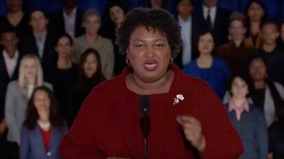 Abrams, de 45 años, cuya campaña para gobernadora energizó al progresismo, aunque acabara perdiendo por la mínima, representa al electorado que proporcionó a los demócratas la victoria en las legislativas de noviembre. Votantes jóvenes, diversos, mujeres y ajenos al establishment, movilizados por su rechazo a Trump. Así lo ha querido escenificar, arropada, a sus espaldas, por una grada con público abrumadoramente femenino, en un sindicato de electricistas de Atlanta. En un Estado, Georgia, tradicionalmente republicano, que votó republicano en noviembre, pero que atraviesa, como otros, un paulatino cambio demográfico (representado por la propia capital) que lo acerca a las ambiciones de los demócratas. “Debemos más a esos millones de personas que hacen que nuestra economía funcione”, ha advertido.