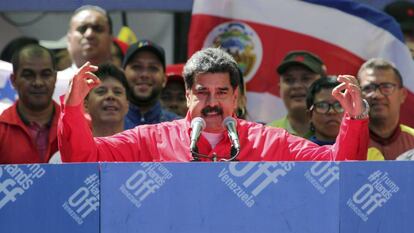 El heredero de Hugo Chávez reunió a sus partidarios en una de las avenidas del centro de Caracas con el objetivo de presentar una respuesta política al operativo opositor en las fronteras. En el mitin televisado, Maduro retó nuevamente a Juan Guaidó a convocar unas elecciones presidenciales, y ofreció propinarle un "revolcón de votos".