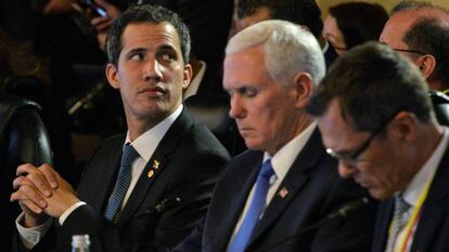 El vicepresidente anunció 56 millones de dólares adicionales de asistencia para sus aliados en la región. Además, prometió que Estados Unidos continuará ejerciendo presión diplomática y económica contra la cúpula chavista, aunque no despejó las dudas sobre una intervención militar, sugerida el sábado por el propio Guaidó. “Esperamos una transición pacífica a la democracia en Venezuela, pero, como ha dicho Trump, todas las opciones están encima de la mesa”, afirmó.