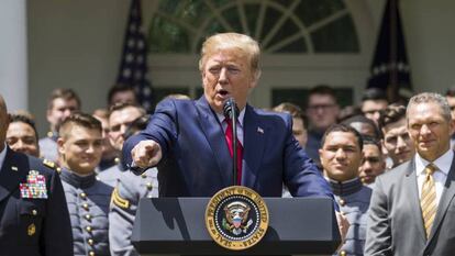 El conflicto con China, dramáticamente enconado en lo comercial, ha escalado también a un peligroso terreno militar: Pekín denunció este lunes la presencia de buques de guerra de Estados Unidos cerca de las islas en disputa en el mar de China Meridional. El incidente se produjo el día después de que Trump anunciara por Twitter nuevos aranceles a productos chinos. El miércoles está prevista la visita de una delegación china a Washington para tratar de alcanzar un acuerdo que ponga fin a una larga y costosa guerra comercial.