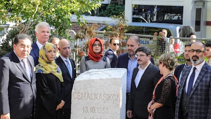 En el primer aniversario de la muerte del periodista saudí, amigos y colegas se reunieron para recordarlo y desvelaron un monumento en su honor frente a la puerta del fatídico consulado. Entre los asistentes estaban la relatora de la ONU para las ejecuciones extrajudiciales, Agnès Callamard, que ha investigado el caso; la premio Nobel de la Paz yemení Tawakkul Karman; opositores de varios países árabes, defensores de los derechos humanos e, incluso, el hombre más rico del mundo, Jeff Bezos, en calidad de propietario de The Washington Post, cabecera para la que escribía Khashoggi. Bezos, que también ha tenido sus encontronazos con los saudíes, prometió a Cengiz que “nunca estará sola” en su búsqueda por la justicia.