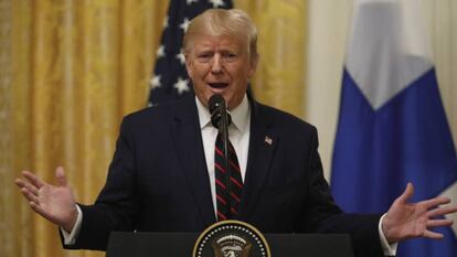 Donald Trump se revolvió con furia este miércoles ante los primeros compases de la investigación en el Congreso para su posible impeachment o destitución, proceso que hasta ahora ha tachado de "fraude", "caza de brujas" y "golpe [de Estado]". En el transcurso de la comparecencia ante la prensa junto al primer ministro finés, Sauli Niinistö, se expresó con virulencia contra los demócratas y los medios de comunicación. El proceso contra el presidente se puso en marcha después de que trascendieran las maniobras del mandatario en Ucrania para que la justicia de este país investigase a su rival político Joe Biden, y al hijo de este, por lo negocios de este último en Ucrania mientras su padre era vicepresidente.