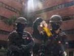 Los primeros en entrar en la Universidad por una entrada completamente calcinada son los bomberos, poco antes de las 08.00 horas locales (01.00 hora peninsular española). Después, un grupo de artificieros en uniforme negro. Finalmente, una columna de cerca de un centenar de agentes del departamento antitríadas (la mafia local) y otros especialistas de varios ministerios.