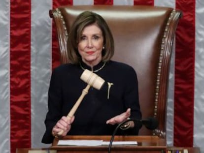 El partidismo en el Capitolio se ha extremado hasta llegar a lo tribal. Este miércoles los 431 miembros de la Cámara de Representantes estaban llamados a votar sobre los cargos contra el presidente, acusado de haber presionado —chantajeado incluso— al Gobierno de Kiev para lograr que anunciara unas investigaciones que perjudicaban a los demócratas y le favorecían electoralmente. Los legisladores debían decidir si todo lo que habían estado leyendo y escuchando de testigos sobre el escándalo de Ucrania evidenciaba un caso de abuso de poder y de obstrucción al Congreso. Y el resultado se ajustó a la línea del partido casi al milímetro. Ni un solo republicano presente en la sala vio motivos para juzgar a Trump y, sin embargo, todos los demócratas, salvo tres excepciones, lo consideraron irremediable.