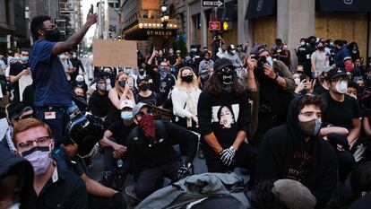 El alcalde, cuya propia hija fue arrestada en las protestas del fin de semana, adelantó el toque de queda tres horas, hasta las ocho de la tarde. Los agentes de policía desplegados por todo Manhattan, que recibían ánimos de algunos de los manifestantes, aguantaban estoicamente las provocaciones e insultos de los más agresivos. A las siete de la tarde, centenares de personas clavaron la rodilla en el suelo ante una veintena de agentes que cortaban la calle 14 a la altura de Broadway, en un gesto popularizado en verano de 2016 por deportistas profesionales que apoyaron una rodilla en el suelo mientras sonaba el himno nacional, para protestar contra la violencia policial y el racismo. “¡Hincad la rodilla!”, les gritaban a los agentes, que permanecían inmutables.