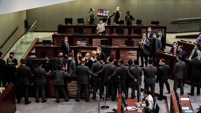Pocas horas antes, el Consejo Legislativo, el Parlamento autónomo, había aprobado una ley que castiga las faltas de respeto al himno nacional chino, un paso más en lo que los partidarios de la democracia en Hong Kong perciben como una rápida erosión del régimen de libertades de que disfruta la antigua colonia británica, inexistentes en el resto de China. La medida recibía el visto bueno una semana después de que el Legislativo chino aprobara una ley de Seguridad Nacional para el enclave, que sus detractores temen que dé la puntilla al principio “un país, dos sistemas” por el que Pekín garantiza esas libertades hasta 2047.