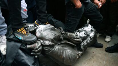 La proliferación de estatuas que adorna el paisaje británico ha dado hasta ahora la falsa sensación de un país a gusto con su historia y consigo mismo. Derribar un monumento público, creían los políticos conservadores, era antes un delito contra la ley y el orden que un mensaje político que requiriese ser atendido. El movimiento Black Lives Matter, con una fuerza inesperada en el Reino Unido, ha descolocado al primer ministro, Boris Johnson, que duda entre agradar a los que reclaman justicia y a los que exigen firmeza; entre proclamar con orgullo la innegable diversidad étnica del país o reconocer la desigualdad manifiesta que sigue existiendo.