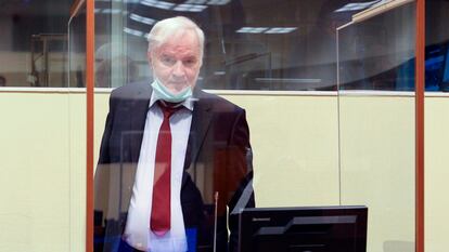 Al principio de la sesión, la presidenta de la sala, Prisca Nyambe, ha recordado las demandas de los abogados. A medida que avanzaba la jornada, Nyambe ha explicado que preguntará si pueden acelerarse las medidas de higiene impuestas por la covid-19, que requieren pausas de una hora para limpiar la sala de apelaciones. Mladic le había pedido que hiciera un esfuerzo por acortar dichos periodos. “He esperado cuatro horas en una habitación vacía y no creo que mañana vaya a soportarlo de nuevo”, ha dicho, poco antes del turno de la fiscalía. La fiscalía, que también apeló porque aduce un cargo adicional de genocidio perpetrado en cinco localidades de Bosnia —descartado en su día— pide además que se rechacen “por completo” los argumentos del procesado. Durante su intervención, la acusación ha asegurado que el exmilitar “es un criminal de guerra y no un héroe”. “Formó parte de una empresa criminal conjunta conjurada para deshacerse de las comunidades no serbias de Bosnia a cualquier precio, un plan que él mismo dijo que debía mantenerse en secreto, y sus argumentos para rechazar la cadena perpetua, en busca de un nuevo juicio o de una reducción de la pena, no se sostienen”.