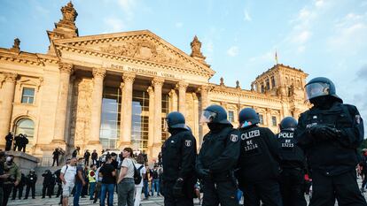 La clase política alemana condenó este domingo el intento por parte de un grupo de extremistas de ultraderecha de entrar la noche del sábado en la sede del Reichstag (Parlamento federal), considerado como el templo sagrado de la democracia del país, después de burlar las barreras de seguridad levantadas alrededor del edificio por la policía. Lograron llegar a las puertas del legendario edificio, donde fueron repelidos por tan solo tres policías, pero no consiguieron entrar. El incidente se produjo después de que la policía disolviera una multitudinaria manifestación convocada el sábado para protestar contra las medidas para combatir la pandemia. Más de 40.000 personas colapsaron el centro histórico de la ciudad gritando consignas contra el Gobierno federal.