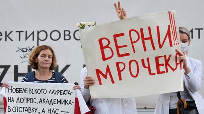 La purga afecta a todos los grados del escalafón profesional. Desde el mecánico Semen Fedotov, despedido de su puesto en la cadena de montaje de la célebre Fábrica de Automóviles de Minsk (MAZ) por hacer huelga, a profesionales de alto nivel con nutrido curriculum y reputación internacional. Es el caso de Alexandr Mrochek, cardiólogo jefe del Ministerio de Salud de Bielorrusia y hasta hace unos días director del Centro Científico y Práctico de Cardiología. El médico, de 66 años, se mostró angustiado por el grado de violencia de las fuerzas de seguridad bielorrusas contra los manifestantes durante los primeros días de protestas. Y alzó la voz. “Es imposible callar cuando ves sangre. Todo esto afecta al destino de las personas, a su futuro, sus familias y sus hijos”, comentó en una entrevista en un diario estatal. En esos días afloraban casos documentados de torturas y malos tratos bajo custodia policial, y se registraron cientos de heridos y cuatro muertos, al menos uno de ellos por munición real.