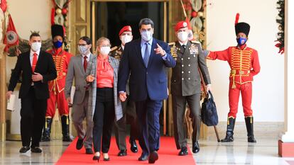 Maduro recurrió una vez más a la retórica del enemigo exterior con el propósito de justificar la grave crisis institucional, social y económica por la que atraviesa el país y culpar a las fuerzas antichavistas del bloqueo. “Nosotros no tenemos una oposición, tenemos una conspiración permanente, avalada y financiada por el Gobierno de Estados Unidos y con la complicidad de varios Gobiernos de Europa. Así se disfracen de ovejitas, son terroristas”, mantuvo el dirigente bolivariano. Ese discurso, habitual en las comparecencias ante medios internacionales como la de este miércoles, tiene estos días un blanco muy definido: España.