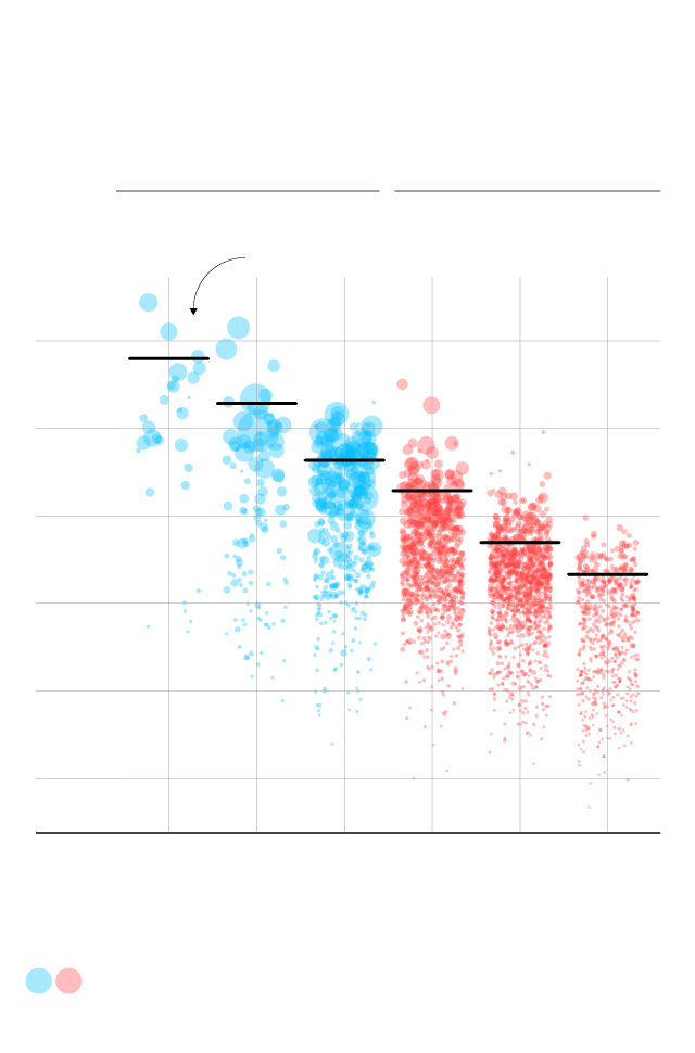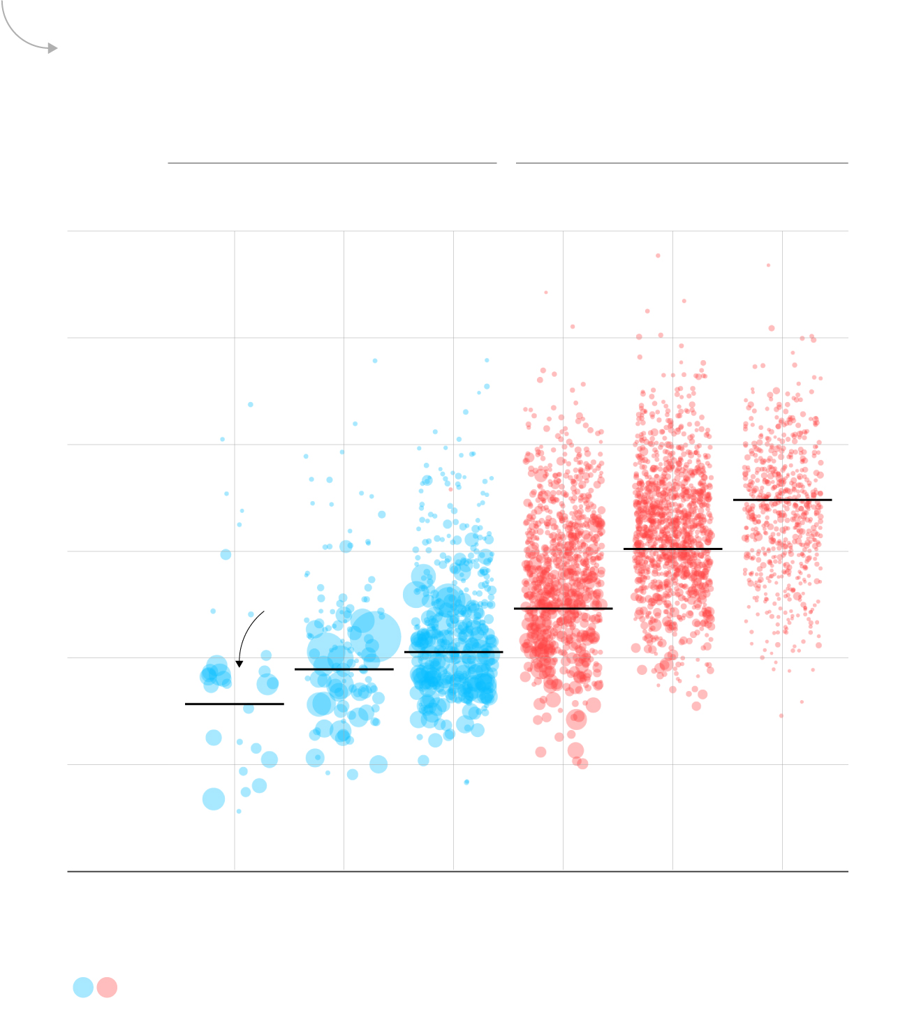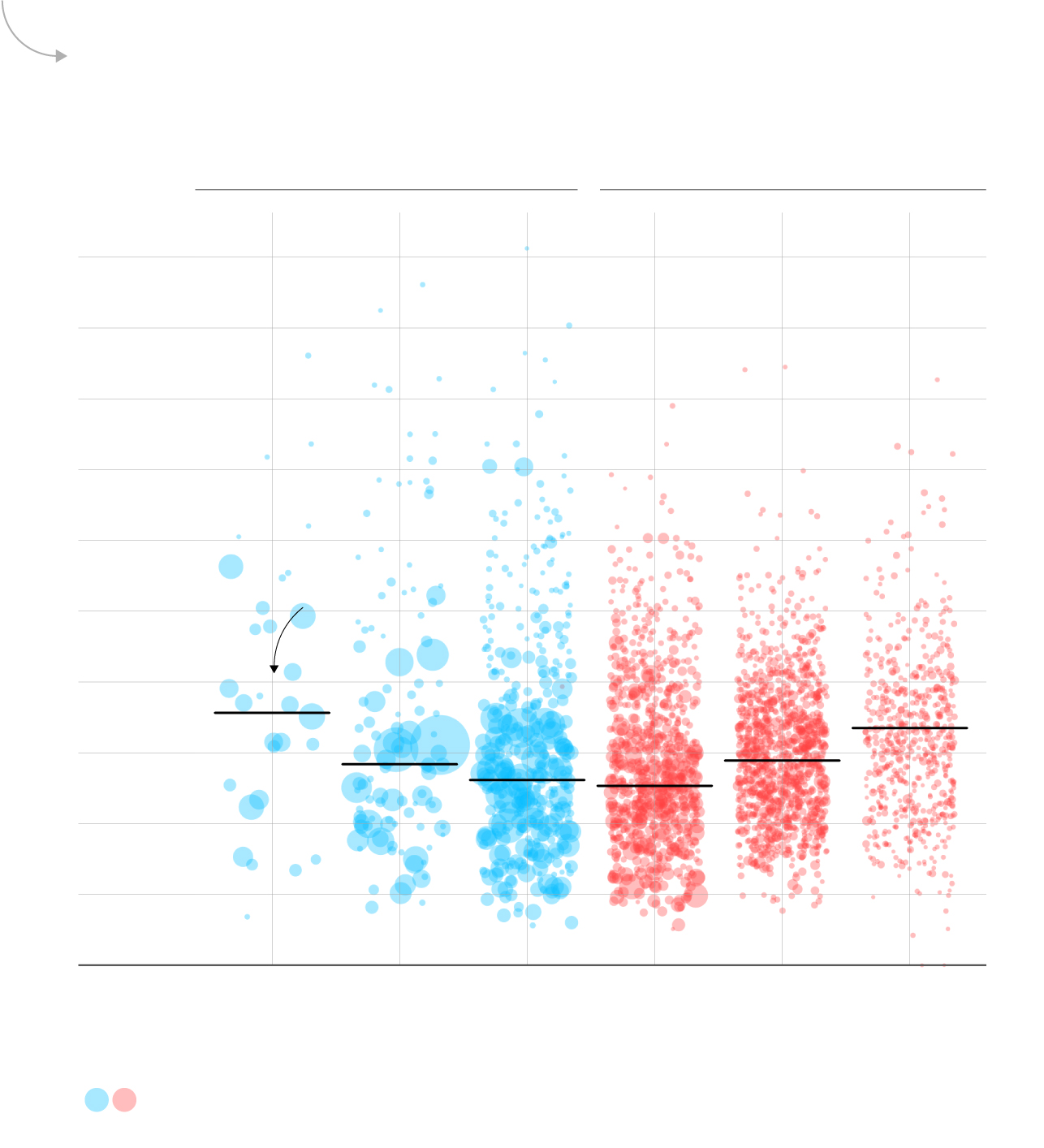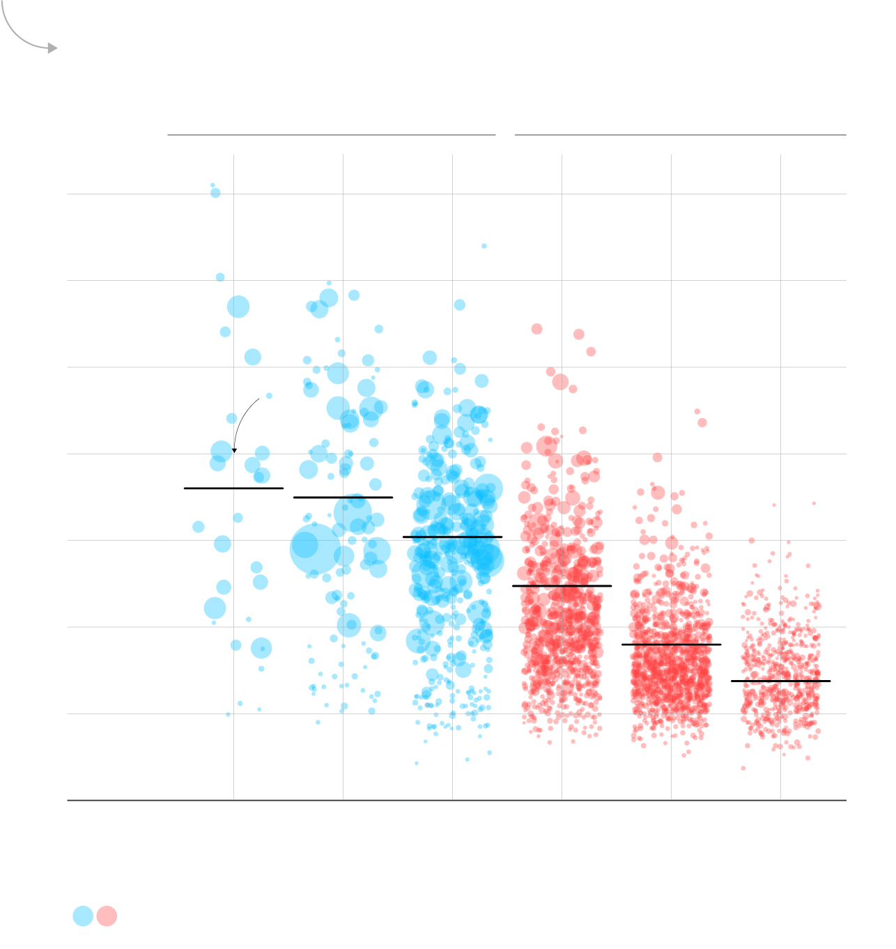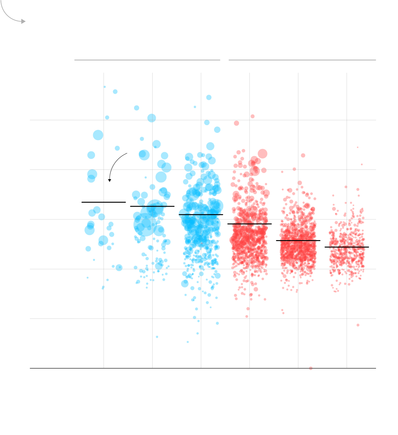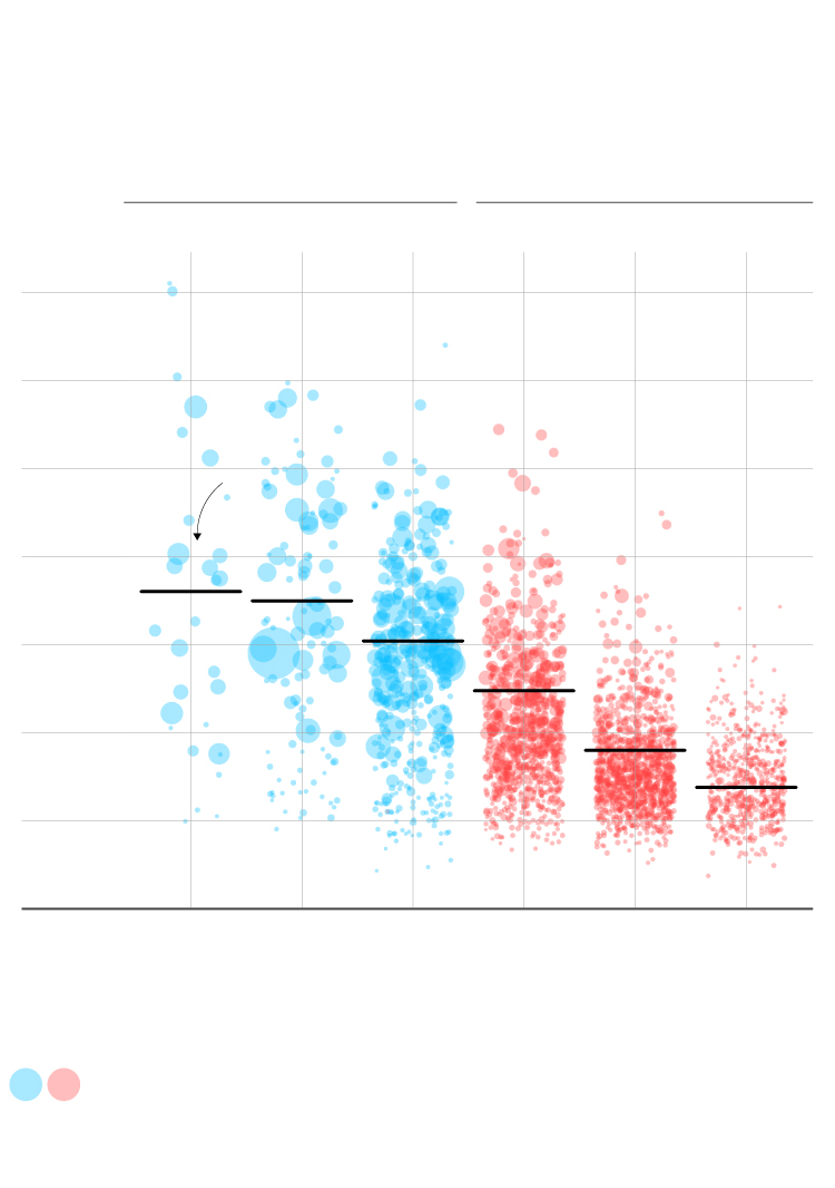 Cada círculo es un condado y el tamaño es proporcional a su población