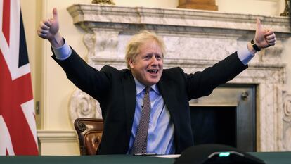 Johnson entendió mejor que nadie el error de su predecesora, Theresa May, quien tuvo el mismo destino que Margaret Thatcher y acabó traicionada por sus propias filas. Después de su arrolladora victoria electoral de diciembre de 2019, el recién elegido primer ministro se rodeó en Downing Street de una corte de leales y depuró el grupo parlamentario de voces proeuropeas como las de Kenneth Clarke, Dominic Grieve o David Gauke. En la noche del miércoles, cuando el pacto con la UE se tocaba ya con la punta de los dedos, hizo una ronda telefónica con sus ministros para pedirles que le ayudaran a “vender un acuerdo” que finalmente aseguraba “la soberanía del Reino Unido”. “Yo también soy un gran defensor de la soberanía. Me considero un patriota inglés. Pero creo que mis excompañeros tienen una visión equivocada de lo que eso significa en un mundo como el actual, en el que cualquier acuerdo supone inevitablemente entregar parte de esa soberanía”, reconocía el jueves por la mañana el ex abogado general del Estado, Dominic Grieve, uno de los conservadores que resistió con más entereza las maniobras avasalladoras de los euroescépticos.