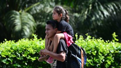 Según la agencia France Presse, 400 han llegado al paso de Corinto este mismo miércoles. Ante la cerrazón de los agentes, los migrantes han cruzado sin permiso y ya transitan por Guatemala. AFP calcula que otros 600 llegarán a la frontera en las próximas horas, al paso de Corinto, pero también al de Agua Caliente. Fuentes de la Secretaría de Relaciones Exteriores mexicana han explicado a EL PAÍS que los migrantes "buscan llegar a las festividades del Cristo de Esquipulas" y así agrandar la caravana. Esquipulas es un pueblo de Guatemala, conocido por el cristo de su basílica, celebrado estos días, y la cercanía a la frontera con Honduras.