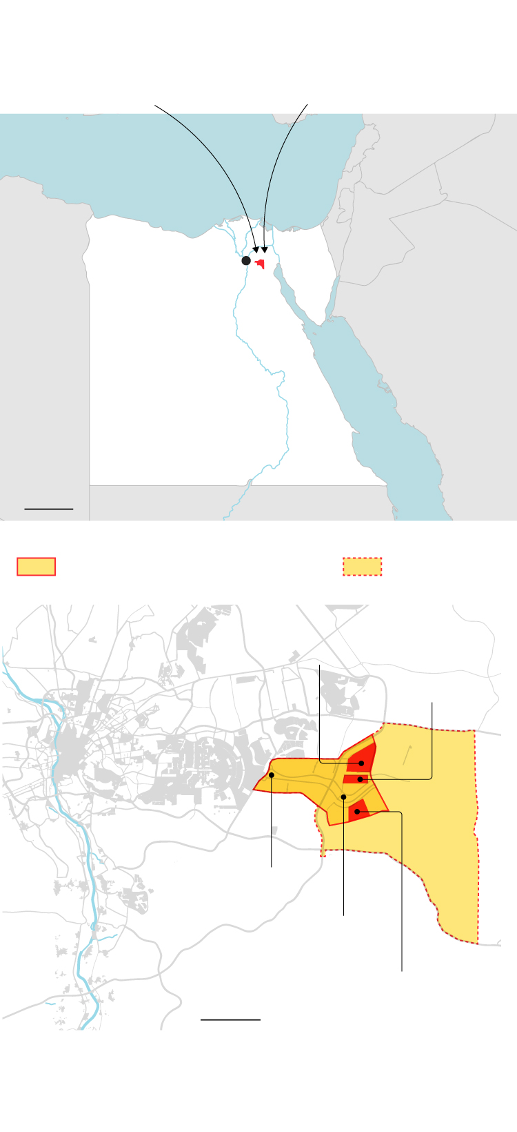 “Será una plaza más grande que Tiananmen”, se ufana Ahmed (nombre figurado) entre la asfixiante polvareda levantada por decenas de camiones que deambulan en un lugar del desierto sembrado de grúas entre el Nilo y el mar Rojo. El empleado de la empresa pública que construye la Nueva Capital Administrativa de Egipto, 40 kilómetros al este de El Cairo, señala las flamantes fachadas de los ministerios, alineados como los milenarios palacios de Luxor, que delimitan el ágora gubernamental ante la imponente mole del Parlamento. En el lejano horizonte —“es por razones de seguridad”, musita— se atisba la futura residencia del presidente Abdelfatá al Sisi, padre del faraónico proyecto. Hasta donde alcanza la mirada se alzan bloques de viviendas, con evocadores nombres en castellano como El Patio o La Vista, donde pronto vivirán dos millones de personas.