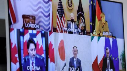 Muchas cosas han cambiado dentro y fuera de Estados Unidos tras la marcha de Donald Trump de la Casa Blanca. Entre ellas el compromiso de la primera economía del mundo con las instituciones globales. Y los países del grupo de las siete principales economías del mundo, el G-7, —que integran Alemania, Canadá, Estados Unidos, Francia, Italia, Japón y el Reino Unido, que ostenta la presidencia rotatoria este año— han querido dejar patente ese cambio. Tras el encuentro virtual que han mantenido este viernes, los líderes del G-7 se han comprometido a intensificar la cooperación internacional para hacer frente a la crisis provocada por la pandemia de la covid-19 y a “trabajar juntos y con otros para hacer de 2021 un punto de inflexión para el multilateralismo”, subraya el comunicado. Se ha tratado, además, del primer acto internacional del nuevo presidente de Estados Unidos, Joe Biden, así como del primer ministro italiano, Mario Draghi, cuyo país ostenta este año la presidencia rotatoria del G-20.