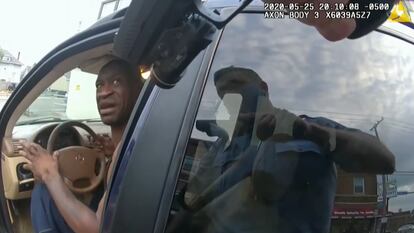 El pasado 25 de mayo George Floyd estaba de buen humor. Antes del vídeo que lo muestra agonizando con tres policías sobre él, el afroamericano compró tabaco con un billete de 20 dólares, supuestamente falso, en la tienda Cup Foods, al sur de Minneapolis. Allí se movía con soltura y parecía sociable. Una vez en el coche, con una pistola apuntándole a la cabeza, un agente le ordena que se baje y Floyd, aterrorizado, le responde: “No me dispare”. En el tercer día del juicio contra el exagente Derek Chauvin, acusado de asesinar al que se ha convertido en el símbolo del movimiento contra el racismo en Estados Unidos, se han mostrado por primera vez las imágenes del interior de la tienda y las de las cámaras de los uniformes de la policía, lo que permitirá al jurado tener el contexto de cómo se llegó a los brutales ocho minutos y 46 segundos durante los que fue asfixiado hasta que se detuvo su corazón.