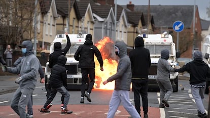La Asamblea de Irlanda del Norte ha comenzado a debatir este jueves el modo de aplacar la violencia en las calles —desatada por las consecuencias del Brexit y el hartazgo de la pandemia—, que se ha extendido ya durante más de una semana dejando más de medio centenar de policías heridos y numerosos daños materiales. Por primera vez desde que comenzaron los disturbios, Londres ha comenzado a prestar atención. Johnson se ha mostrado “profundamente preocupado” y ha pedido a las distintas facciones norirlandesas que busquen una solución. “El modo de resolver las diferencias es a través del diálogo, no mediante la delincuencia o las acciones criminales”, ha dicho.