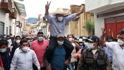 El otro Perú habló en la primera vuelta de las elecciones presidenciales de este domingo. El Perú que no vive en Lima, el que no está en Twitter y al que nadie prestaba atención durante la campaña electoral ha logrado colocar a un candidato que nadie vio llegar a la cabeza de la carrera electoral. El maestro sindicalista de izquierda radical, Pedro Castillo, ha sido el aspirante a presidente más votado, según el conteo actualizado hasta la mañana de este lunes. Con un 18,2% de los votos, Castillo tiene ya un pie en la segunda vuelta. El segundo lugar se lo disputan, por una diferencia mínima y con el 80% de voto escrutado, tres candidatos conservadores: la eterna líder fujimorista peruana, Keiko Fujimori, con el 13%, el economista Hernando de Soto, con un 12,3%, y el representante de extrema derecha Rafael López Aliaga (12,1%).