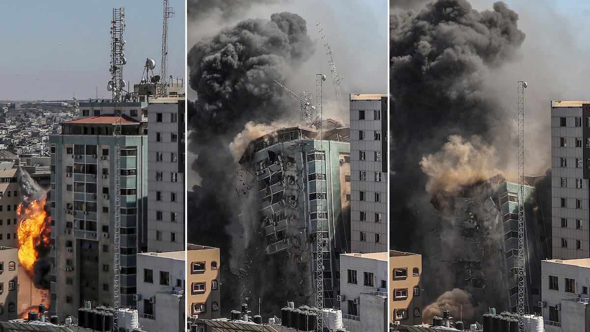 Poco después de las 15.00 hora local (14.00 en la España peninsular) un bombardeo derrumbó una torre de 12 plantas en la ciudad de Gaza, sede de las oficinales locales de AP y Al Jazeera, además de otros medios internacionales, en la Franja. Los ocupantes recibieron una orden de desalojo antes de producirse el ataque. Se trata de la quinta alta torre que la aviación israelí bombardea en la actual escalada bélica con las milicias de Gaza. En un comunicado, las Fuerzas Armadas de Israel han justificado el ataque alegando que algunas de las oficinas de esa torre eran utilizadas por Hamás y la Yihad Islámica para almacenar material militar, aunque no han presentado ninguna prueba. La aviación israelí también ha atacado la casa de Jalil Hayya, jefe adjunto de Hamás en Gaza.