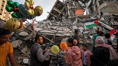 Después de permanecer 11 días ocultos bajo los bombardeos, los habitantes de Gaza recobraron este viernes el pulso vital y salieron en masa a las calles. Numerosas vías estaban sembradas de escombros de los edificios arrasados o dañados por los ataques de la aviación israelí. En la primera jornada de calma tras la entrada en vigor de un alto el fuego a primera hora de la madrugada, muchos peregrinaron hacia el comercial distrito de Rimal de la capital del enclave, escenario de destrucción en cadena de altas torres de oficinas y viviendas, que se ha convertido en símbolo de la escalada bélica más intensa y mortífera entre Hamás e Israel desde la guerra de 2014.