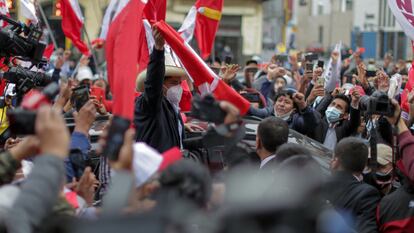 “Vengo del Perú profundo”, así ha arrancado sus mítines a lo largo de la campaña. El mensaje conecta con el mundo rural, el selvático y, además, con los más pobres que viven en los cerros de las ciudades, cuyas raíces se encuentran ahí. Gente de provincias que llegó a las ciudades en los ochenta. Y puede que en esas montañas se haya fraguado su triunfo, de momento. Lima importa mucho, porque en la capital vive un tercio de la población, y aquí la campaña de Castillo ha tenido poco relumbre. Pero el maestro, adscrito a un partido marxista-leninista aunque él diga no comulgar del todo con esas ideas, ha logrado equilibrar la balanza aglutinando mucho del voto periférico. “En costa, sierra y mar, Pedro ganará”, coreaban sus seguidores en los mítines. Castillo ha recuperado las arengas públicas en las plazas, ahora que las campañas priman lo virtual.