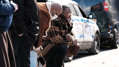 Los miembros del clero local, incluido el pastor Kevin McCall (derecha), se reúnen para una vigilia y oran frente a un edificio de apartamentos en el Bronx.Foto: SPENCER PLATT (AFP) | Vídeo: REUTERS