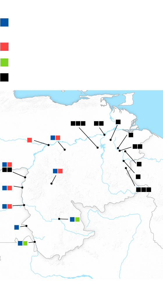 En el Estado de Amazonas, la porosidad de las fronteras con Colombia y Brasil resulta un factor fundamental. Allí impera la ley del Ejército de Liberación Nacional (ELN) y de las llamadas disidencias de las Fuerzas Armadas Revolucionarias de Colombia (FARC), grupo guerrillero desmovilizado después del proceso de paz, pero del que una facción decidió volver a las armas.