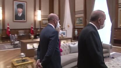 El incidente tiene potencial para convertirse en un nuevo sofagate, aquel episodio de hace un año en el que, durante una visita al presidente Recep Tayyip Erdogan en Ankara, la presidenta de la Comisión fue relegada a sentarse en un sofá mientras el presidente del Consejo ocupaba una silla junto al dirigente turco: Michel no reaccionó entonces ante la desigualdad de trato, y las acusaciones de machismo le persiguen hasta hoy.