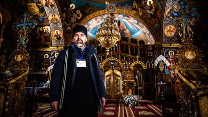 En cualquier caso, una cosa es el miedo y otra, el pánico. El único cambio visible en el pueblo es que se ha acortado la jornada escolar para que los profesores puedan ayudar a los refugiados ucranios en el paso fronterizo. “De aquí no se ha ido nadie, todo lo contrario: ha venido gente de fuera porque quiere ayudar”, aclara el cura Daniel Petrisor en la iglesia ortodoxa rumana de Negostina en la que preside unas misas en las que ahora incluye “una petición de oración especial por la paz, en Ucrania y en todo el mundo”. Pertenece a la minúscula minoría étnica ucrania en Rumania (apenas unas decenas de miles de los 20 millones de habitantes) y utiliza su conocimiento de ambas lenguas para ayudar como traductor a los refugiados que cruzan por el cercano puesto de Siret, uno de los pasos fronterizos por los que un millón de ucranios han escapado de la guerra a los países vecinos, sobre todo Polonia. “Todos estamos preocupados porque, en el siglo en el que vivimos, no pensábamos en la guerra. Hace una semana, había paz a nuestro alrededor. Ahora todos estamos afectados, porque somos el primer Estado al lado [de Ucrania] y yo, personalmente, siendo de etnia ucrania, estoy preocupado y me duele con todo el alma, sobre todo porque hice estudios religiosos en Kiev”.